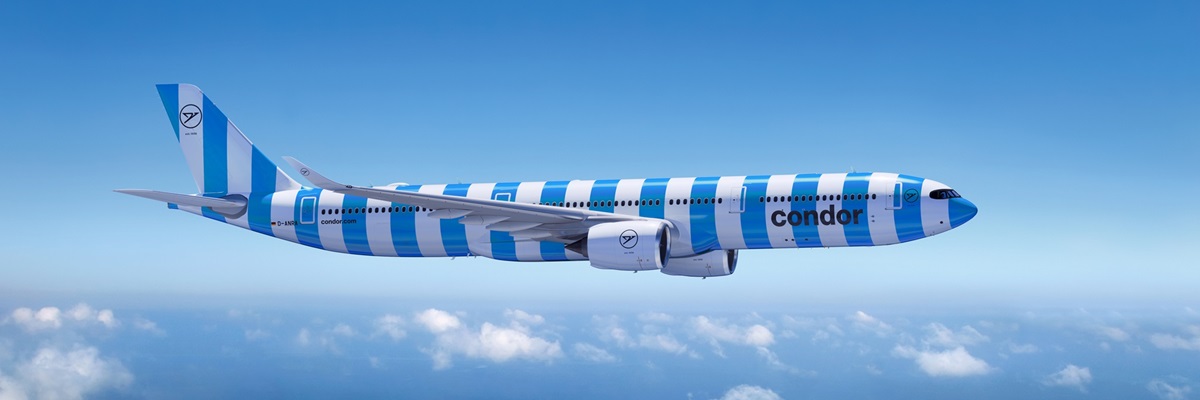 Mit einem frischen Markenauftritt und einem Streifendesign, das für Vielfalt und Urlaub steht, positioniert sich Condor als sympathischer und zuverlässiger Partner für Urlaubs- und Geschäftsreisen.