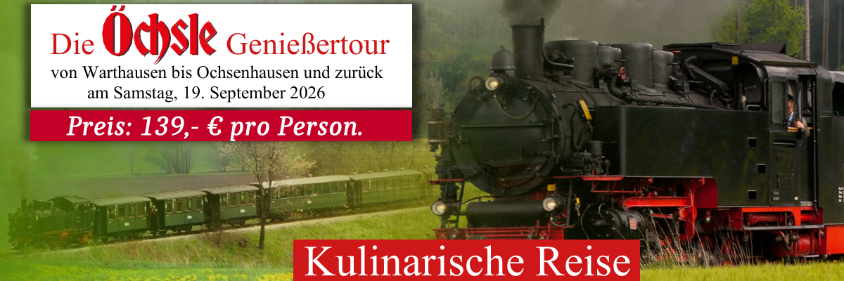 Erleben Sie eine einzigartige kulinarische Reise mit der historischen Öchslebahn nach Ochsenhausen.