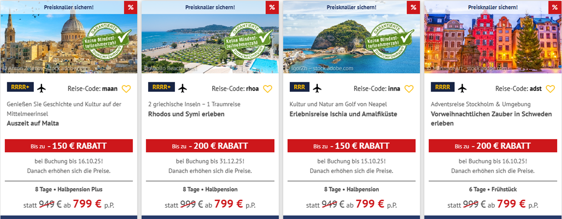 Fragen Sie uns gern zu allen Angeboten, wir beraten Sie kompetent zu allen Specials, auch für Alleinreisende!