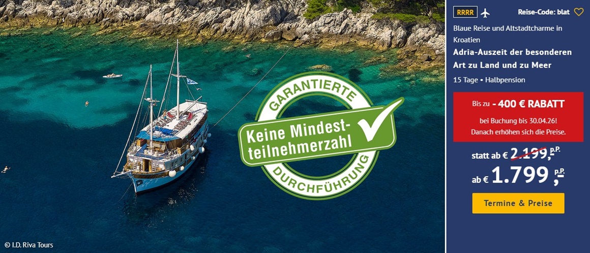 Hinweis: Viele günstige Restplätze sind schnell vergeben.