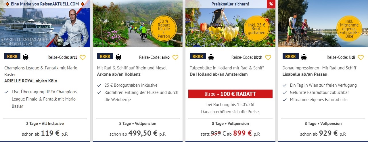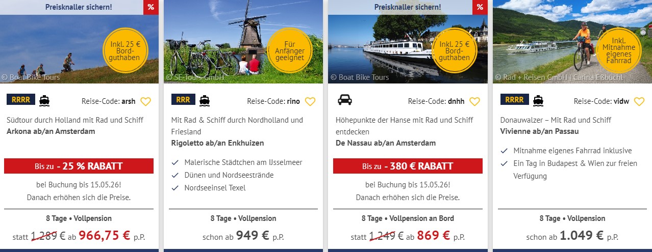 Rad, Fluss oder SCHIFF JETZT Plätze SICHERN!